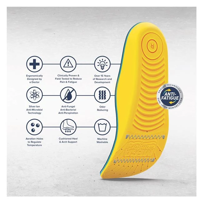 MEGAComfort’s Personal Anti-Fatigue Mat (PAM) ESD insole is ergonomically designed by a Doctor, using a patented combination of high-density dual layer 100% memory foam for anti-static footwear only. ESD technology provide tested electro-static dissipation. PAM ESD doesn’t make regular footwear ESD compliant. MEGAComfort insoles have been clinically proven and field tested to reduce pain and fatigue while increasing balance and comfort. The PAM ESD Insole provides maximum shock absorption and comfort in anti-static footwear, making them far more effective than the expensive ESD matting. Ideal for stationary and mobile workers.