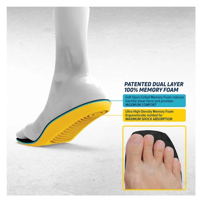 MEGAComfort’s PAM SqUARE Toe Insole is ergonomically designed by a Doctor, using a patented combination of high-density dual layer 100% memory foam. MEGAComfort insoles have been clinically proven and field tested to reduce pain and fatigue while increasing balance and comfort. The PAM Square Toe Insole provides maximum shock absorption and comfort in Square Toe footwear, making them far more effective than the standard anti-fatigue floor mats at reducing muscle strain and improving balance reactions. Perfect for steel toe footwear as the memory foam compresses for safe clearance. Ideal for stationary, mobile and those who work outdoors wearing Square Toe footwear.