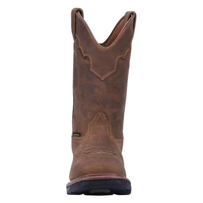 The Blayde is your go-to western work boot for comfort and durability. Crafted with saddle tan leather. Keep your foot dry with the waterproof membrane bootie. Featuring the Dan Post DPC Comfort System that with a Removable Orthotic that’s breathable, anti-fungal, anti-microbial and machine washable. Also features a broad square toe and an Ultra Light heat, oil and slip-resistant outsole.