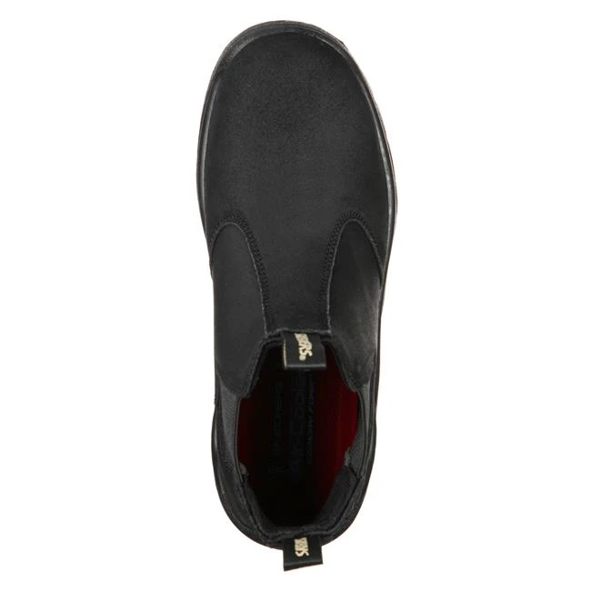 Make staying protected and comfortable all day even simpler wearing the SKECHERS Work: Tapter ST boot. Smooth durable oiled suede upper in a slip on casual comfort steel toe work ankle height chelsea boot with stitching and overlay accents. Memory Foam insole.