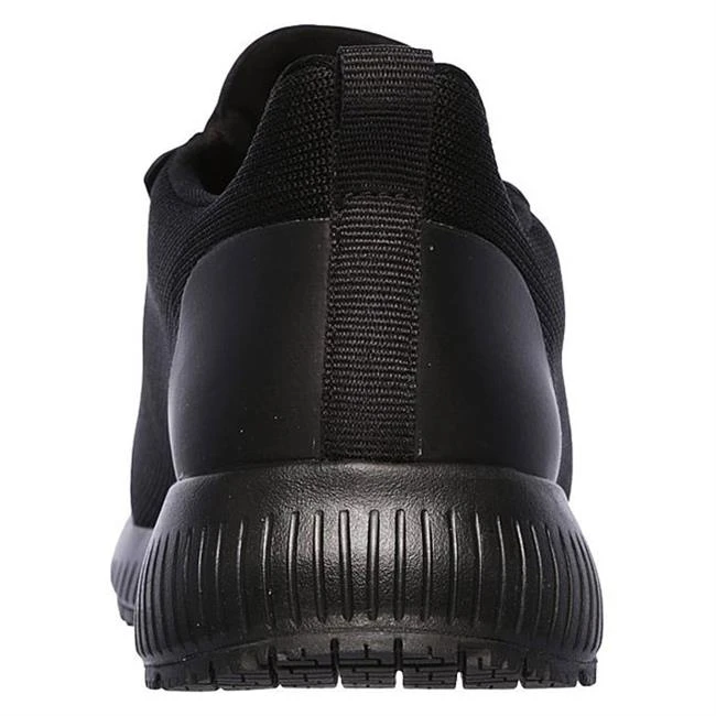 Comfort and protection that also looks great comes in the SKECHERS Work: Squad SR shoe. Soft sporty knit mesh fabric and synthetic upper in a slip on stretch laced sporty casual work slip resistant sneaker with stitching accents and Memory Foam insole.